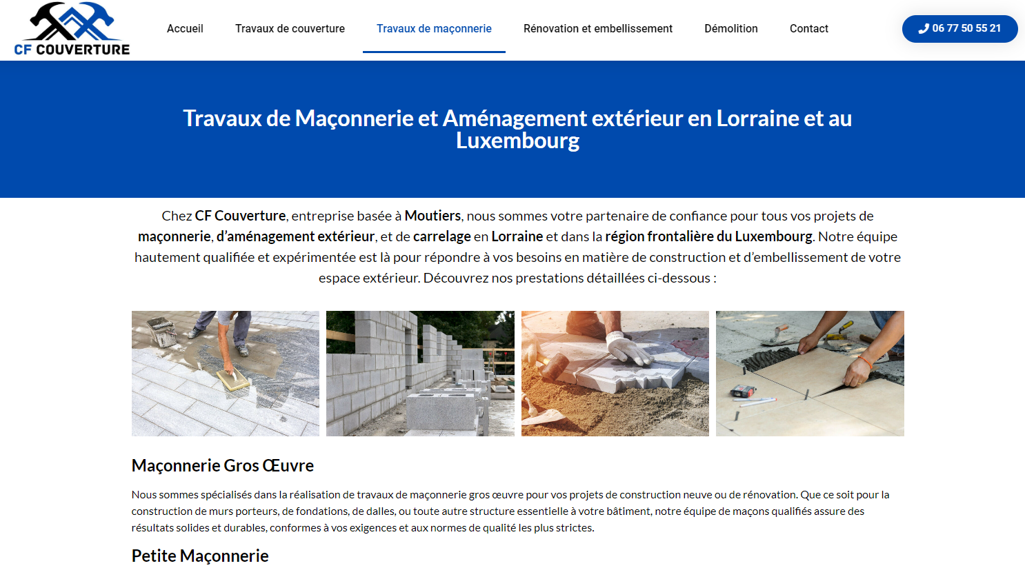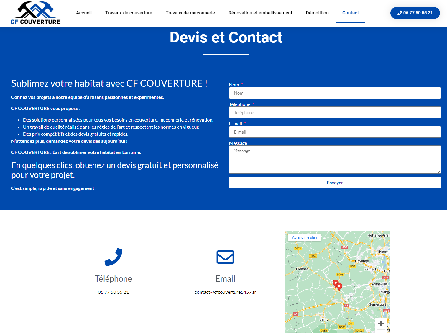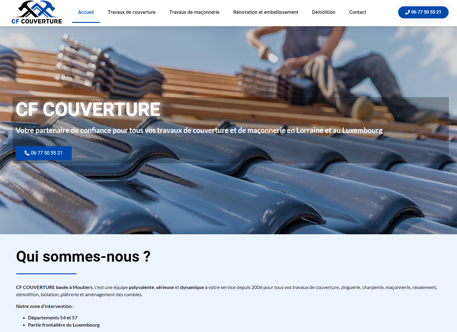 Réalisation d'un site internet pour un couvreur à Moutiers avec, notamment :